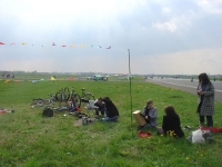 For their contribution to Field Broadcast, Dave Ball and Oliver Walker worked on site, attempting to reintroduce to the airfield something of its former sonic landscape. They invited members of the public to simulate, as accurately as possible, the sound of planes taking off.